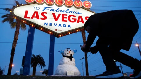 snow at McCarran Airport since Dec. 17, 2008.(AP Photo/John Locher)